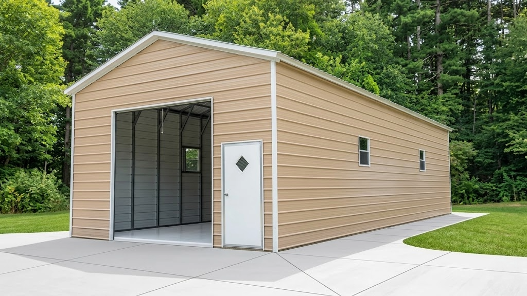 This 40x50x14 commercial steel building is designed for performance, space, and reliability. Featuring three large roll-up doors for efficient access, multiple entry points, and a clean two-tone finish, it’s ideal for workshops, storage, or business operations. The vertical roof system ensures proper water runoff, while the fully enclosed design offers protection in all conditions. Built for heavy use with low maintenance, this structure delivers the strength and versatility needed to keep your operation moving.